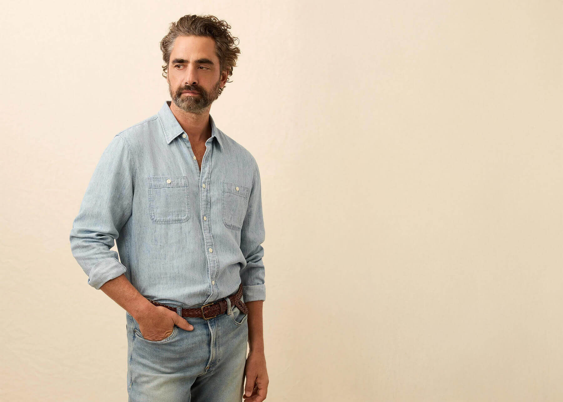Think of a classic chambray shirt, but super light and super soft. We updated ours in a Tencel and linen blend for the softest hand-feel and improved breathability.