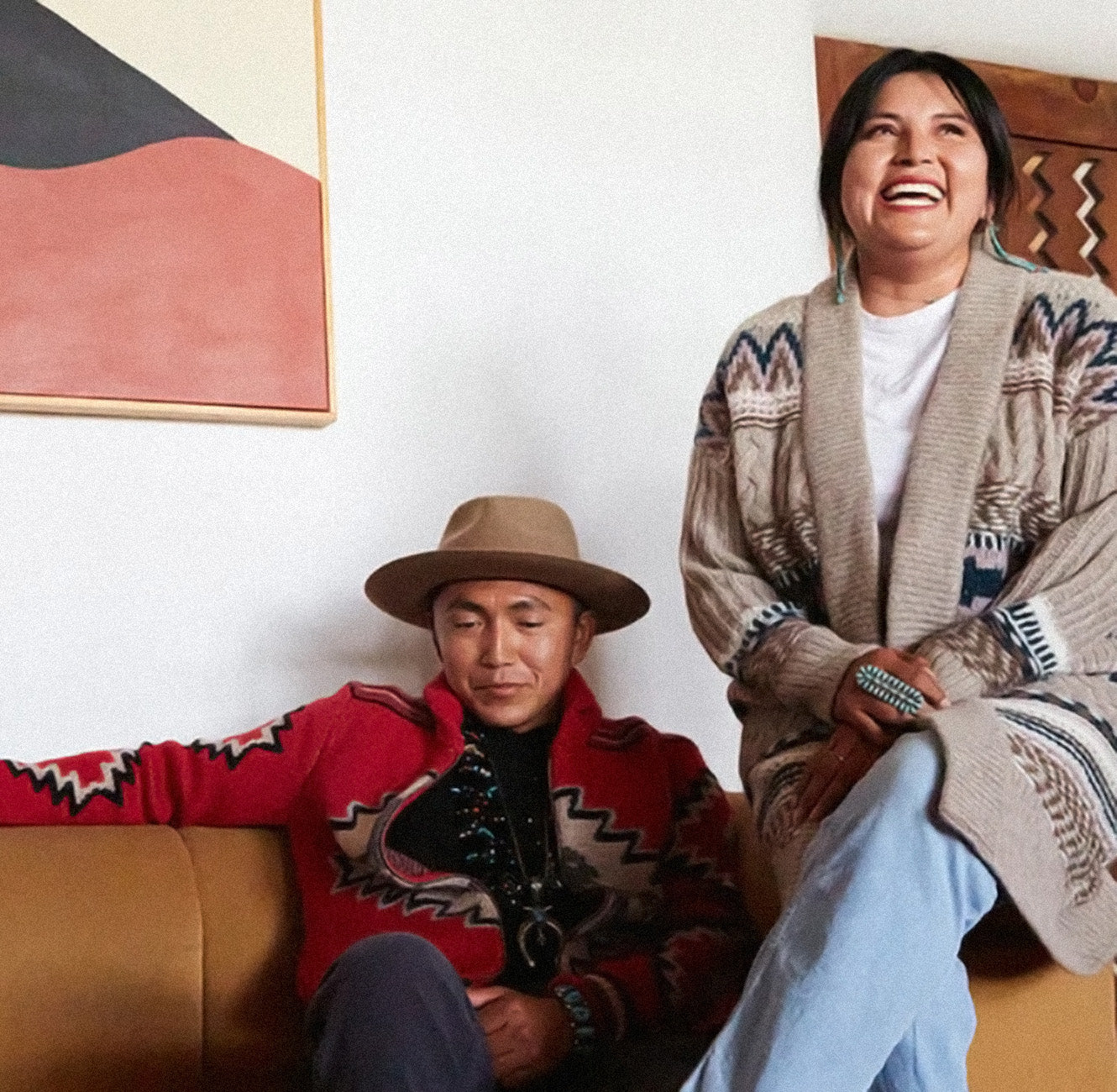 We’ve been deeply committed to Native initiatives for almost ten years, partnering with six different Native artists and designers (many on an ongoing basis) and taking a holistic and mutually reciprocal 360° approach to these partnerships. Beyond design partnerships, we are proud to share financial and product resources, support Native mutual aid efforts, offer Native designed product and fabric donations to Native communities in need, and display Land Acknowledgements in all of our retail stores.