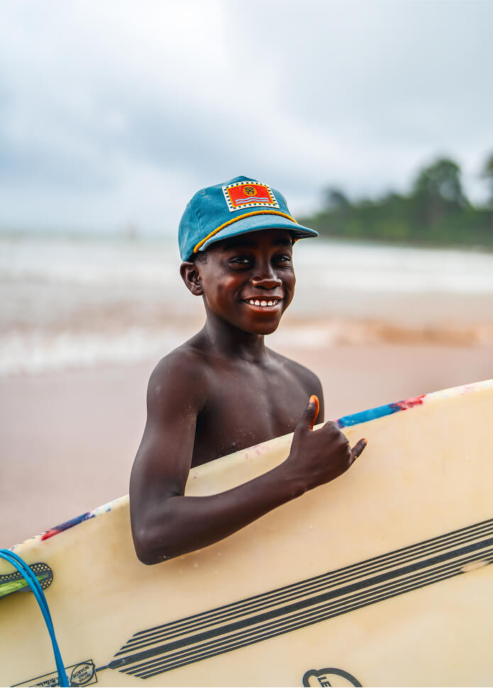Alibo was born on the island of Martinique and founded Surf Ghana in 2016 as a reclamation of West-African surf culture. It has since grown into an international phenomenon, expanding into a skate collective with several co-working hubs across the country. What began as an expression of Black Joy has grown into a social, educational, and economic empowerment movement.