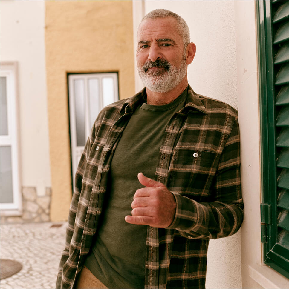 We went straight to the source—Portugal, where flannel’s basically an art form. Woven from premium organic cotton and brushed for softness, it’s warm, breathable and perfectly weighted for layering. A few styles in the capsule were designed with our friend and collaborator Garrett McNamara, bringing his laid-back sensibility to the mix. With a fine, durable texture and that lived-in comfort only true Portuguese craftsmanship can deliver, it’s flannel at its best.